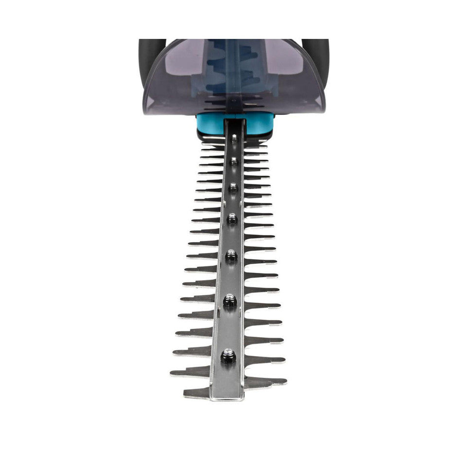 The Makita DUH523 is an 18V cordless hedge trimmer with 52cm long blade. It has an Anti-vibration structure with 5 cushions which absorb the vibration from the blade and motor-crank section. Powered by a single Makita 18V lithium-ion battery (not included).